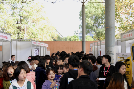 武傳新聞網(wǎng)訊(文/記者 葉信樂 見習(xí)記者 黃紫玉 黃釵 圖/攝影記者 蔡雷雷)“豐厚的薪酬”,“優(yōu)渥的福利”,再加上待填滿的職位……求職者們都心向往之。11月14日下午,武漢傳媒學(xué)院2019年畢業(yè)生供需見面會(huì)在校風(fēng)雨籃球場(chǎng)舉行。為吸引更優(yōu)質(zhì)的人才,各大用人單位的宣傳花樣百出;在這抹“色彩”的盡頭,卻有一家公司,沒有“門面”,沒有廣告宣傳展架,甚至連一個(gè)“招聘”的牌子都未擺出……