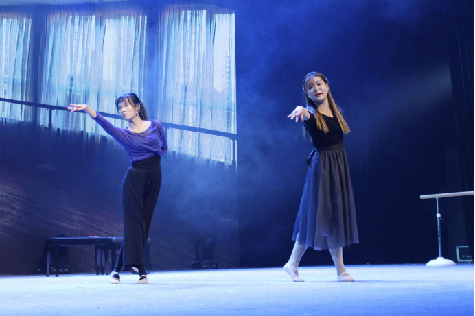 原創(chuàng)話劇《暖光》由黃嫻、曲光浩等四位老師飾演。劇中黃嫻老師飾演的舞蹈老師艾欣先后開導(dǎo)了藝考學(xué)生和遭受公司破產(chǎn),與男友分手的學(xué)員,卻對自己的生活充滿迷茫。由曲光浩老師飾演的艾欣的大學(xué)同學(xué)為她撥開陰霾,使她見到暖陽。給觀眾上演了一段同伴間相互激勵,依賴的暖心故事,贏得觀眾熱烈的掌聲。