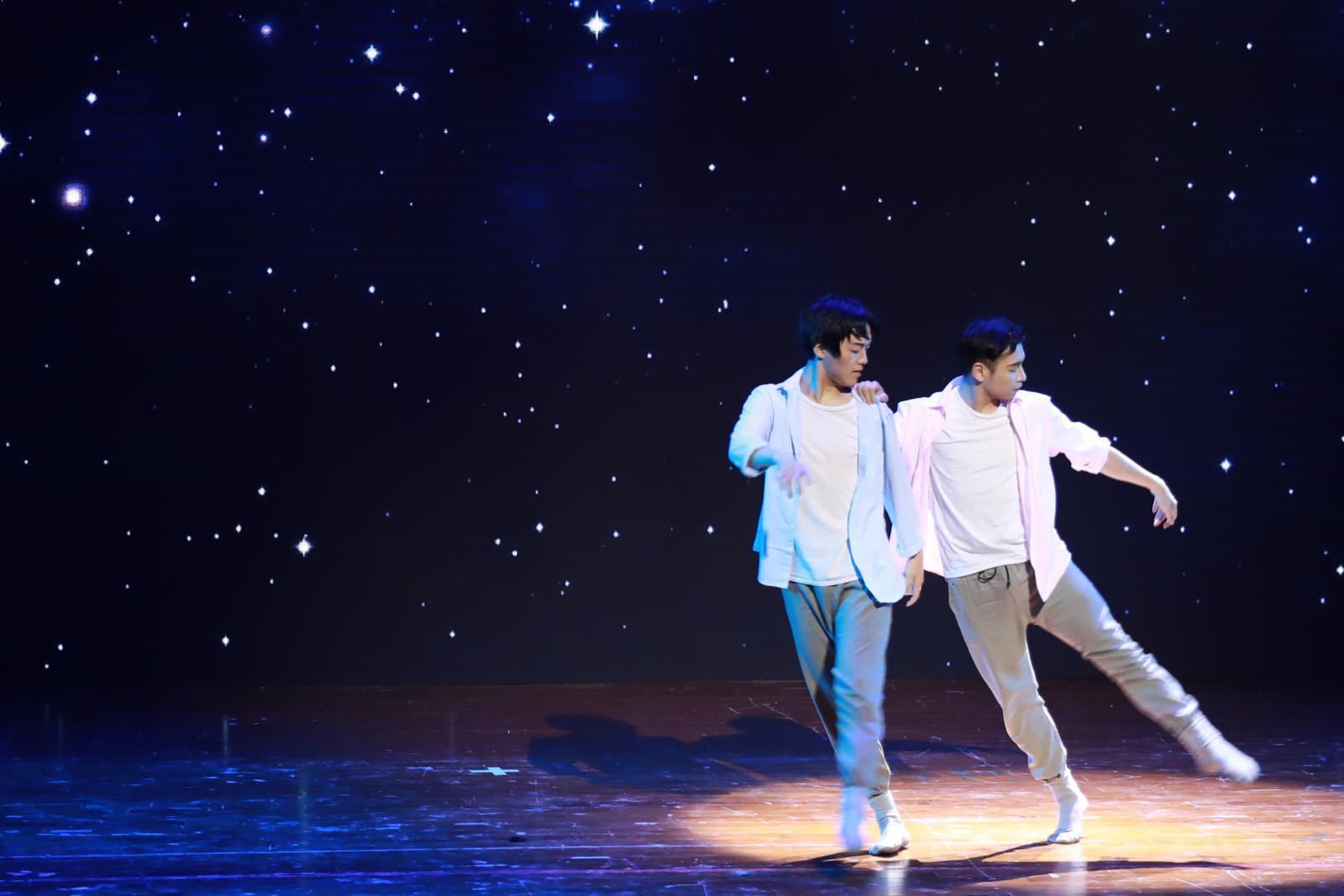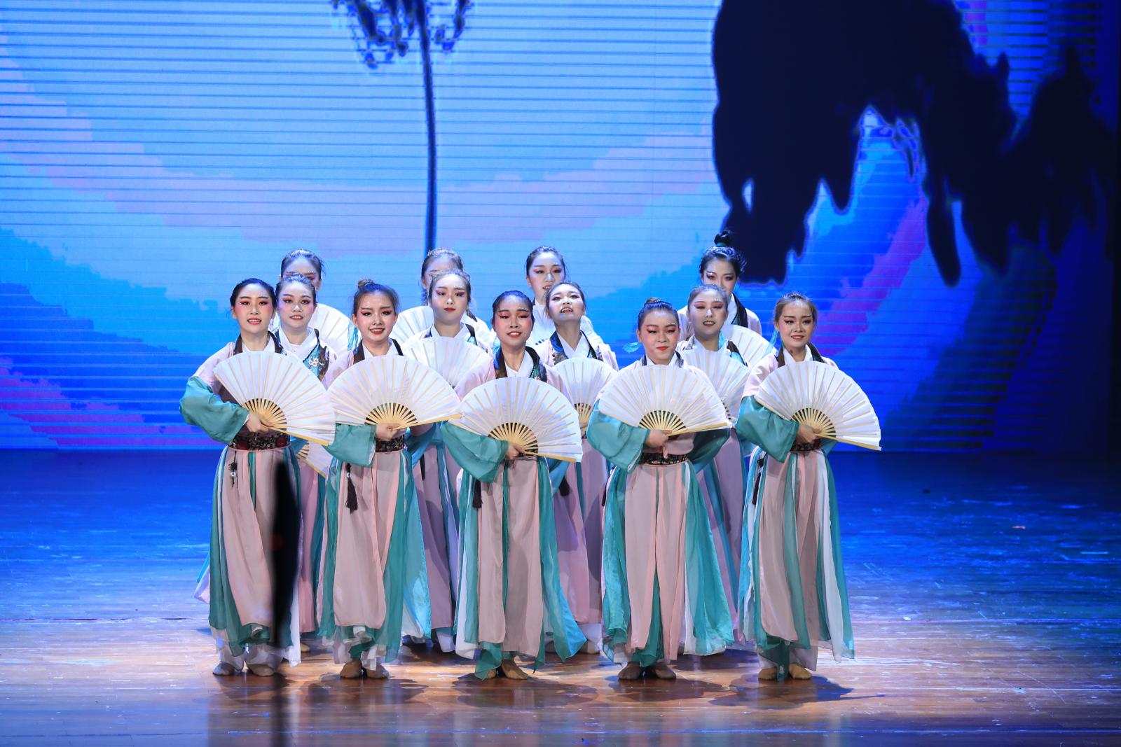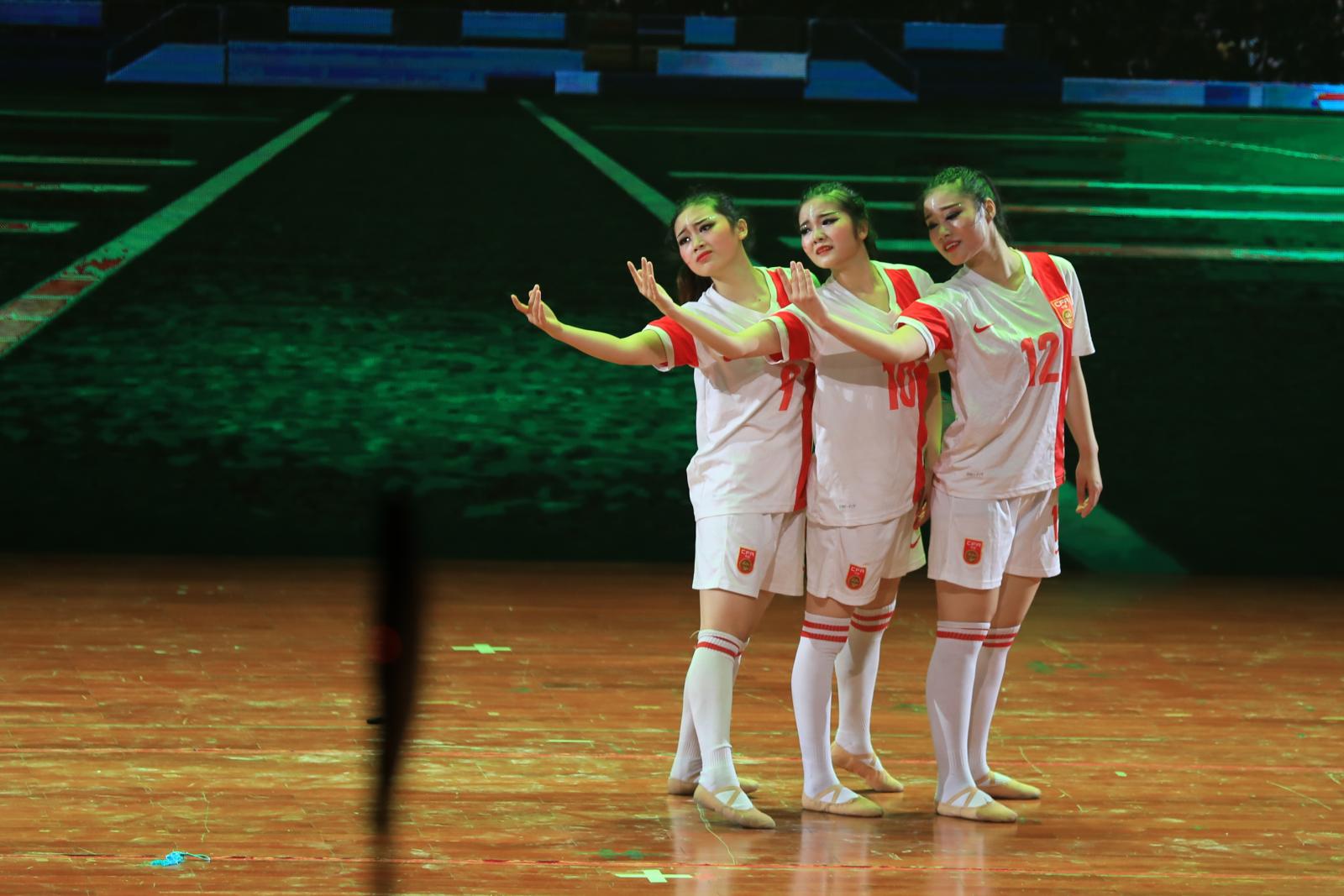 ??演出伊始,20名舞者身穿藍(lán)色的服裝,在藍(lán)白交織的燈光下用一把揮動綢帶,擺動長裙翩翩起舞。開場舞《風(fēng)酥雨憶》將山東海陽和膠州地區(qū)的秧歌風(fēng)格結(jié)合在一起,舞出了漢族女子細(xì)膩。隨后,舞蹈學(xué)專業(yè)何睿、張琪敏、魏茜3名畢業(yè)生身穿足球服表演了現(xiàn)代舞《博了哭了》,用肢體語言講述了女足運(yùn)動員在比賽場上頑強(qiáng)奮斗的故事。據(jù)了解,舞蹈《搏了哭了》是三人大一時第一次參加比賽的作品。何睿表示,當(dāng)年為了準(zhǔn)備比賽需要節(jié)食控制體重,賽后吃大餐慶祝的樣子仿佛就在昨天。