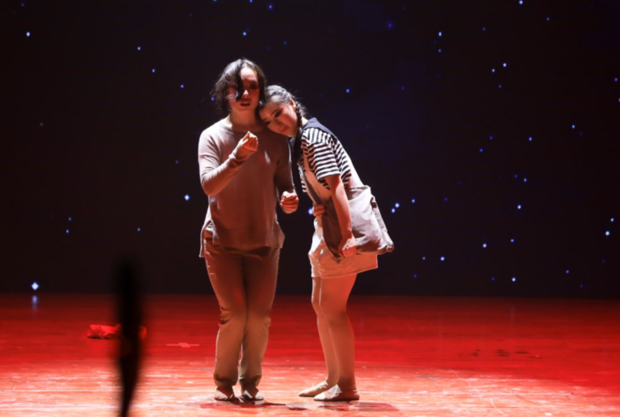 ??在逐漸變快的心跳聲下,舞者緊緊相擁。原創(chuàng)舞蹈《瘋?cè)嗽浮酚衫蠋熽惲x和學(xué)生鄧敏、鄧一帆編排創(chuàng)作,講述了孩子和精神病母親之間的故事。鄧敏表示,作品靈感來自于身為精神病患者的外公的妹妹。為了更好體會精神病患者的情緒和狀態(tài),她查閱了大量資料,曾5次將自己關(guān)進(jìn)“小黑屋”聽恐怖音效。鄧敏坦言,看見最終作品后哭了很久,半年都沉浸在壓抑的情緒里,感覺自己都快病了。